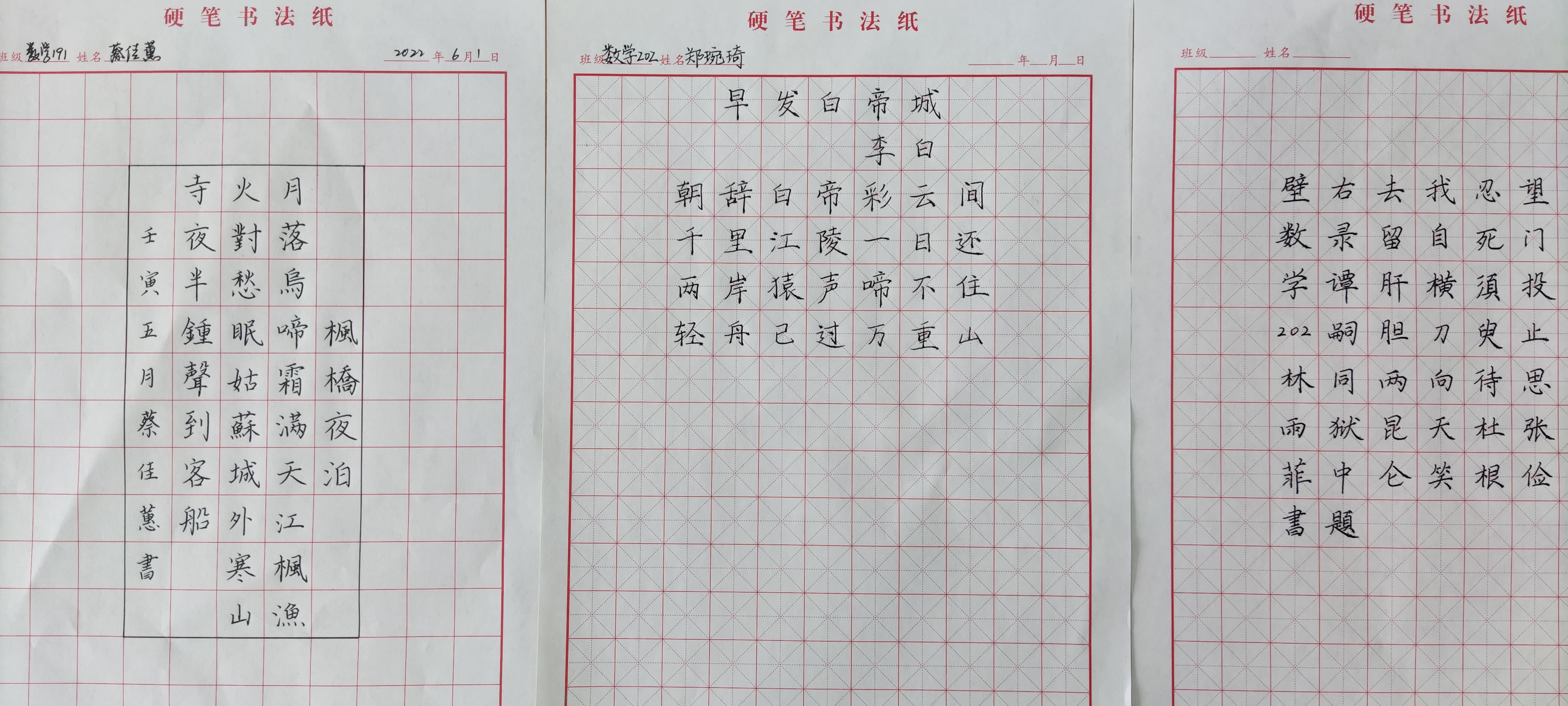 弘扬中华民族优秀传统文化,促进学生的全面发展,数学学院首届“三字”比赛于近期顺利举行。本次大赛由数学系主办,学生数学科研协会协办,大赛受到了学院领导、教务科和学工办的大力支持和高度重视。