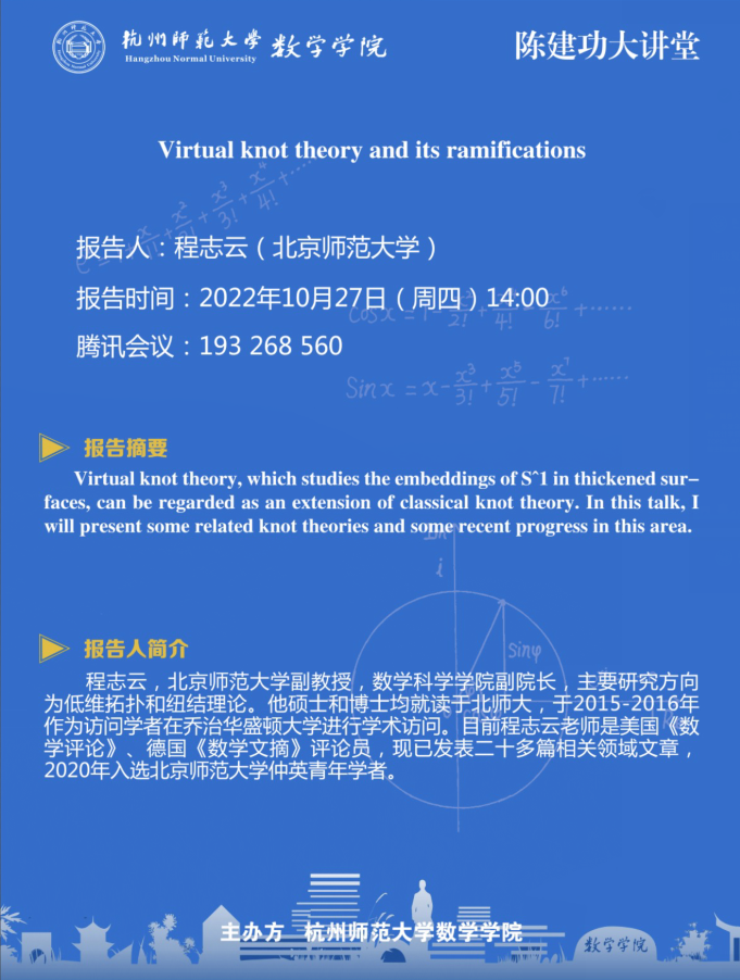 地址:浙江省杭州市余杭塘路2318号勤园23号楼 电话:0571-28867633 邮编:311121 版权所有 © 2021 杭州师范大学数学学院 公安备案号:33011002011919 浙ICP备11056902号-1