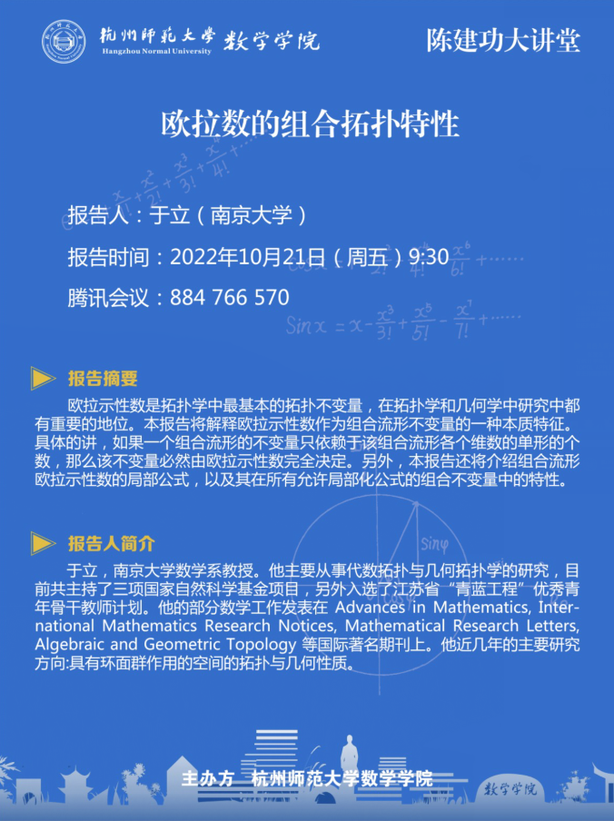 地址:浙江省杭州市余杭塘路2318号勤园23号楼 电话:0571-28867633 邮编:311121 版权所有 © 2021 杭州师范大学数学学院 公安备案号:33011002011919 浙ICP备11056902号-1