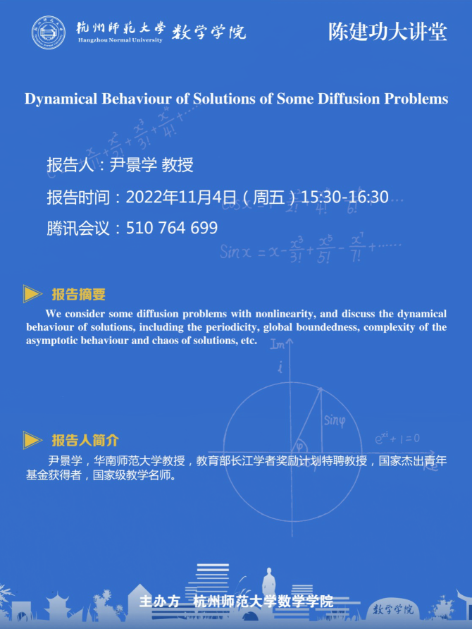 陈建功大讲堂:Dynamical Behaviour of Solutions of Some Diffusion Problems