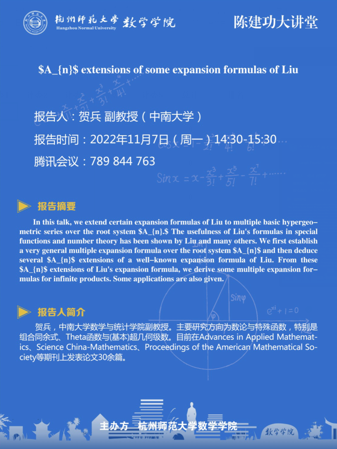 陈建功大讲堂:$A_{n}$ extensions of some expansion formulas of Liu