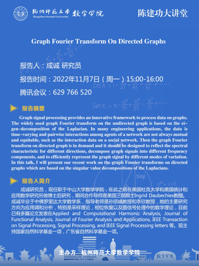 陈建功大讲堂:Graph Fourier Transform On Directed Graphs