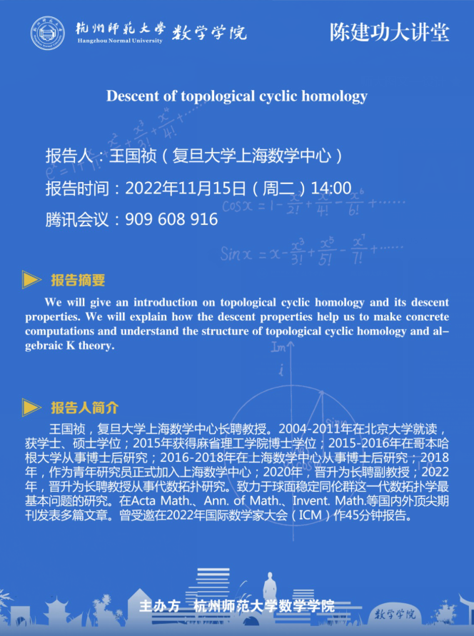陈建功大讲堂:Descent of topological cyclic homology
