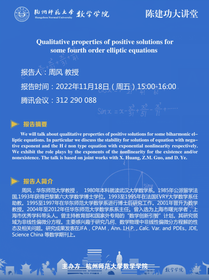 陈建功大讲堂: Qualitative properties of positive solutions for some fourth order elliptic equations