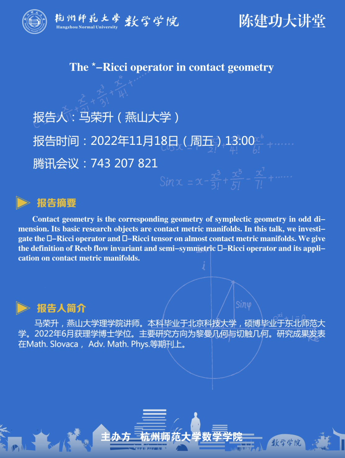陈建功大讲堂:The ∗-Ricci operator in contact geometry