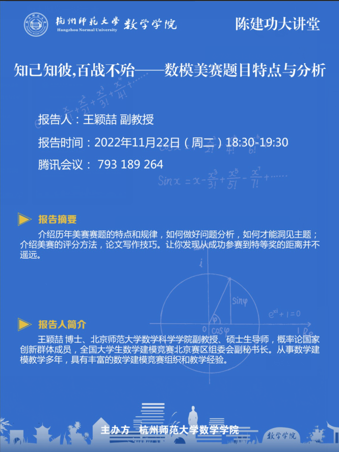 陈建功大讲堂:知己知彼,百战不殆——数模美赛题目特点与分析