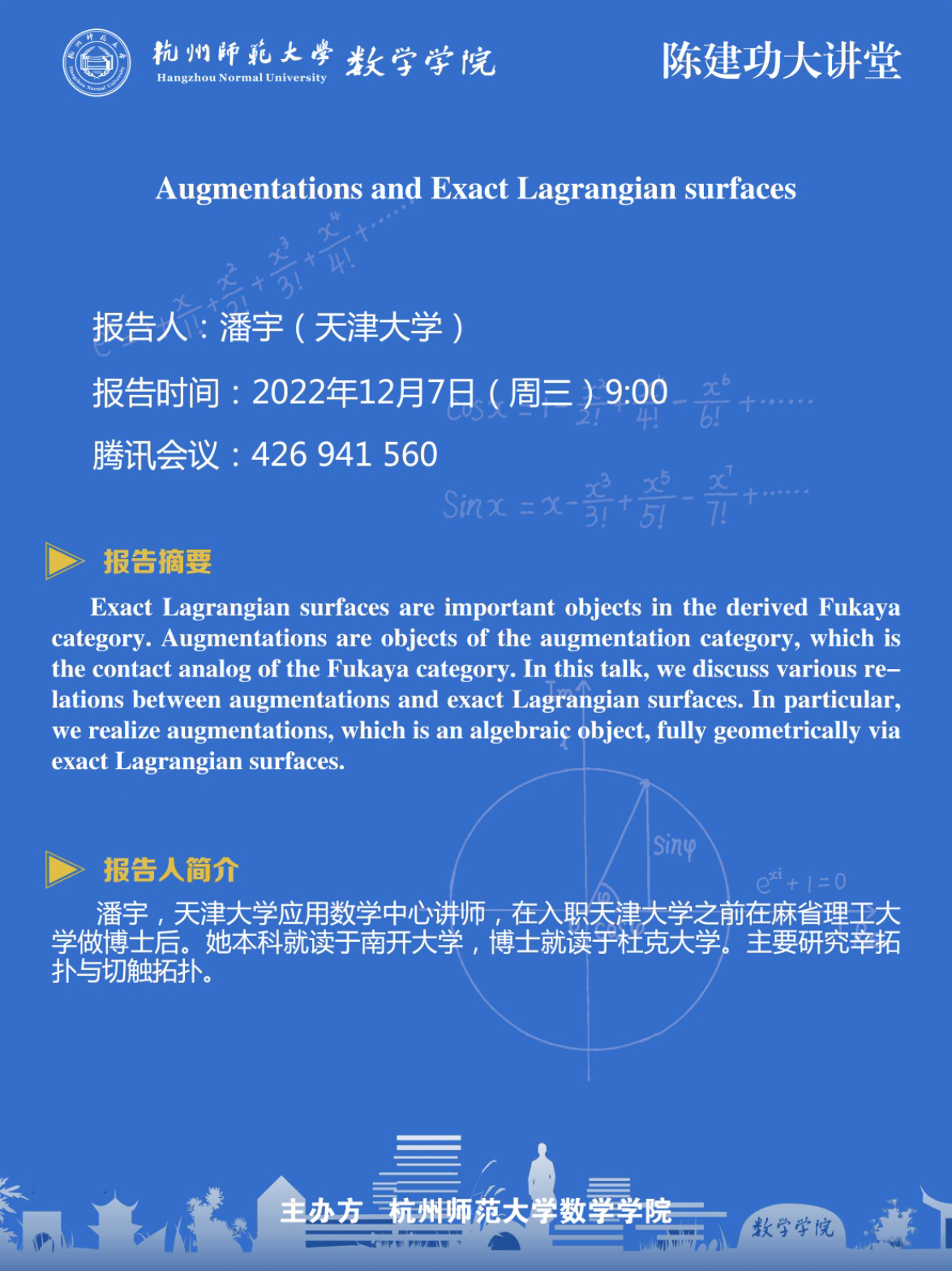 陈建功大讲堂:Augmentations and Exact Lagrangian surfaces