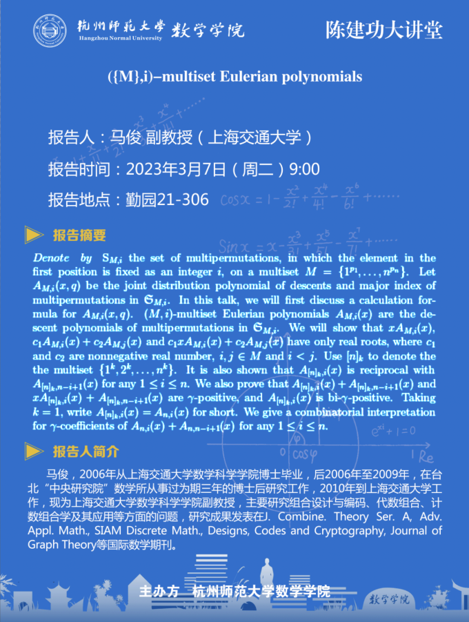 陈建功大讲堂:({M},i)-multisetEulerianpolynomials