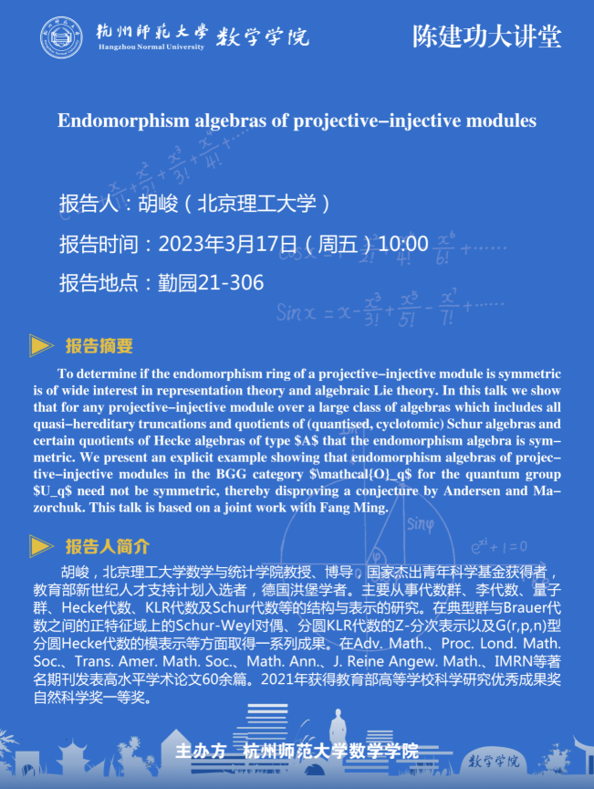 陈建功大讲堂:Endomorphism algebras of projective-injective modules