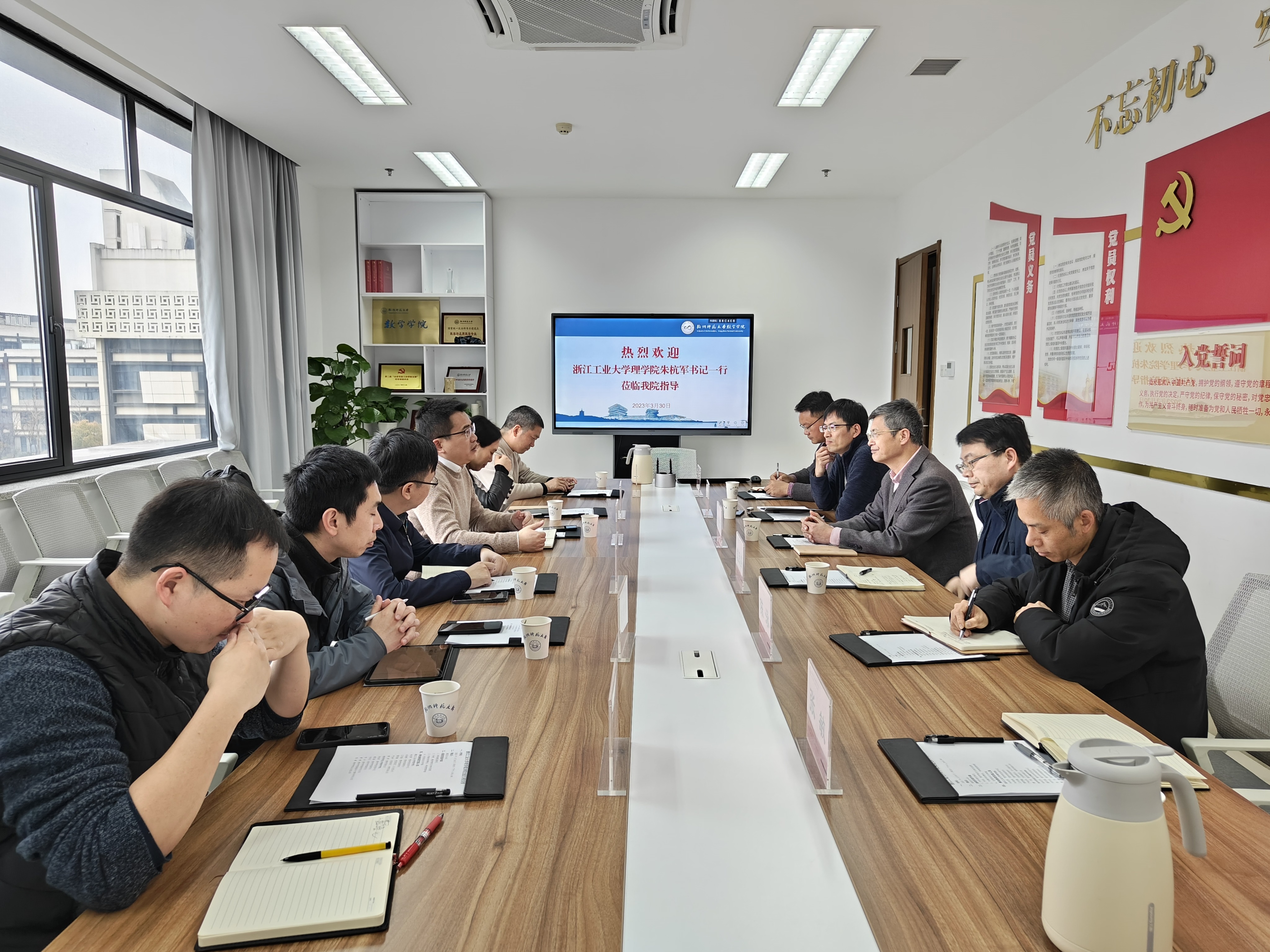 3月30日,浙江工业大学理学院党委书记朱杭军一行来四虎 开展调研。院党委书记徐金芳、教学副院长虞旦盛、科研副院长何济位、数学系系主任陈泳、数科系系主任曹健等参加座谈交流会。