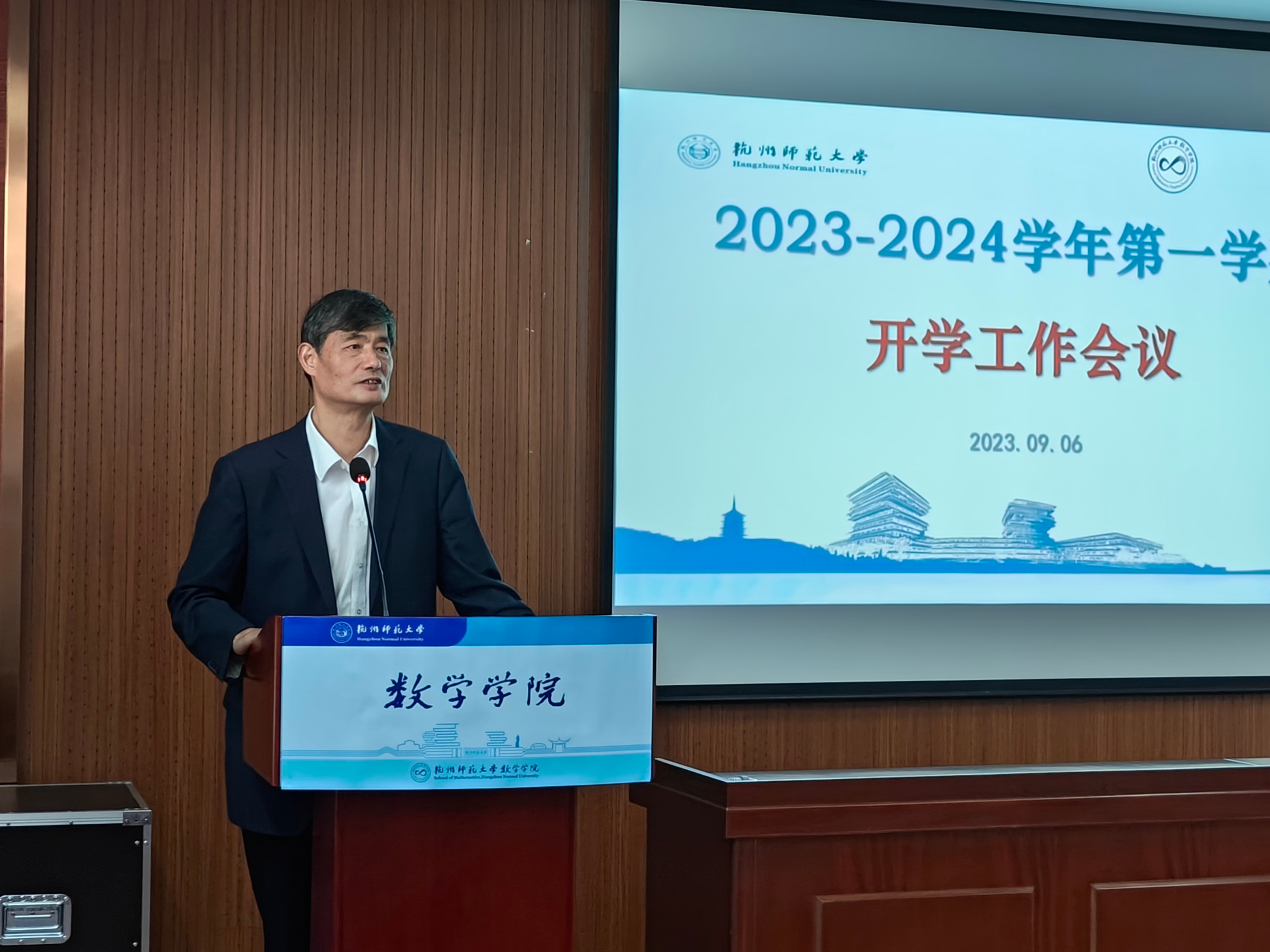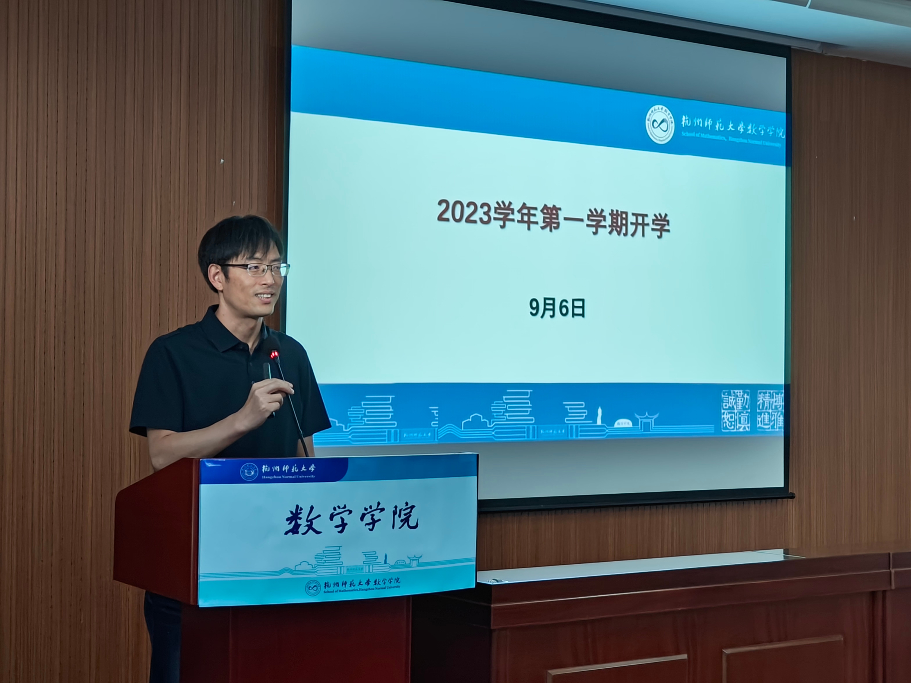 会议第一阶段,由院长谢琪代表学院欢迎全体教师回归,新教师加入数学学院大家庭。谢琪指出,数学学院会议室从两年前坐不满到如今坐不下,充分见证了学院快速发展。谢琪强调,希望新教师快速融入学院、快速适应教学、快速产出成果,以顺应学院的发展;作为高校教师,教书育人是立身之本,科学研究是立业之基,谢琪寄语新教师做好教学工作的同时,铆足干劲在科研上尽快成长丰收。院党委书记徐金芳指出,新教师给学院带来新活力新希望,老教师要发扬传帮带传统,对新教师多指导多关爱,加快新教师成长。新教师要多请教多探讨,促进教育创新。徐金芳还强调,师者百行,以德为先。教师是立教之本、兴教之源, 青年教师要不忘立德树人初心,牢记为党育人、为国育才使命,并努力落实到教学科研活动中,体现在教书育人过程中, 修师德养师风,聚力坚持“四个统一”标尺,起好模范示范作用。