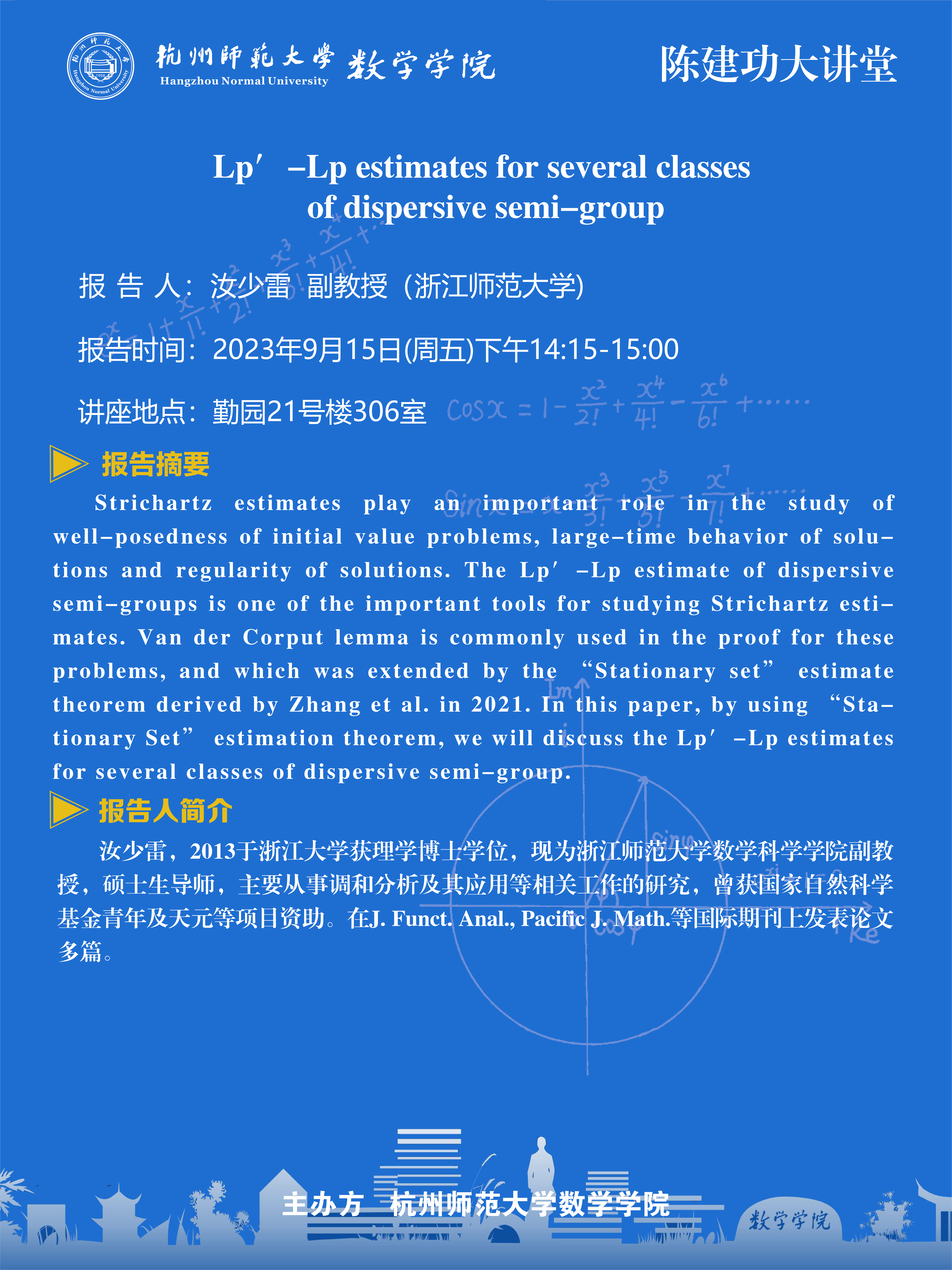 陈建功大讲堂:Lp′-Lp estimates for several classes of dispersive semi-group