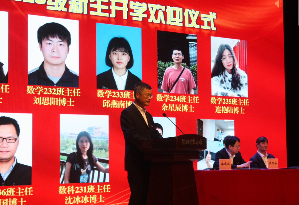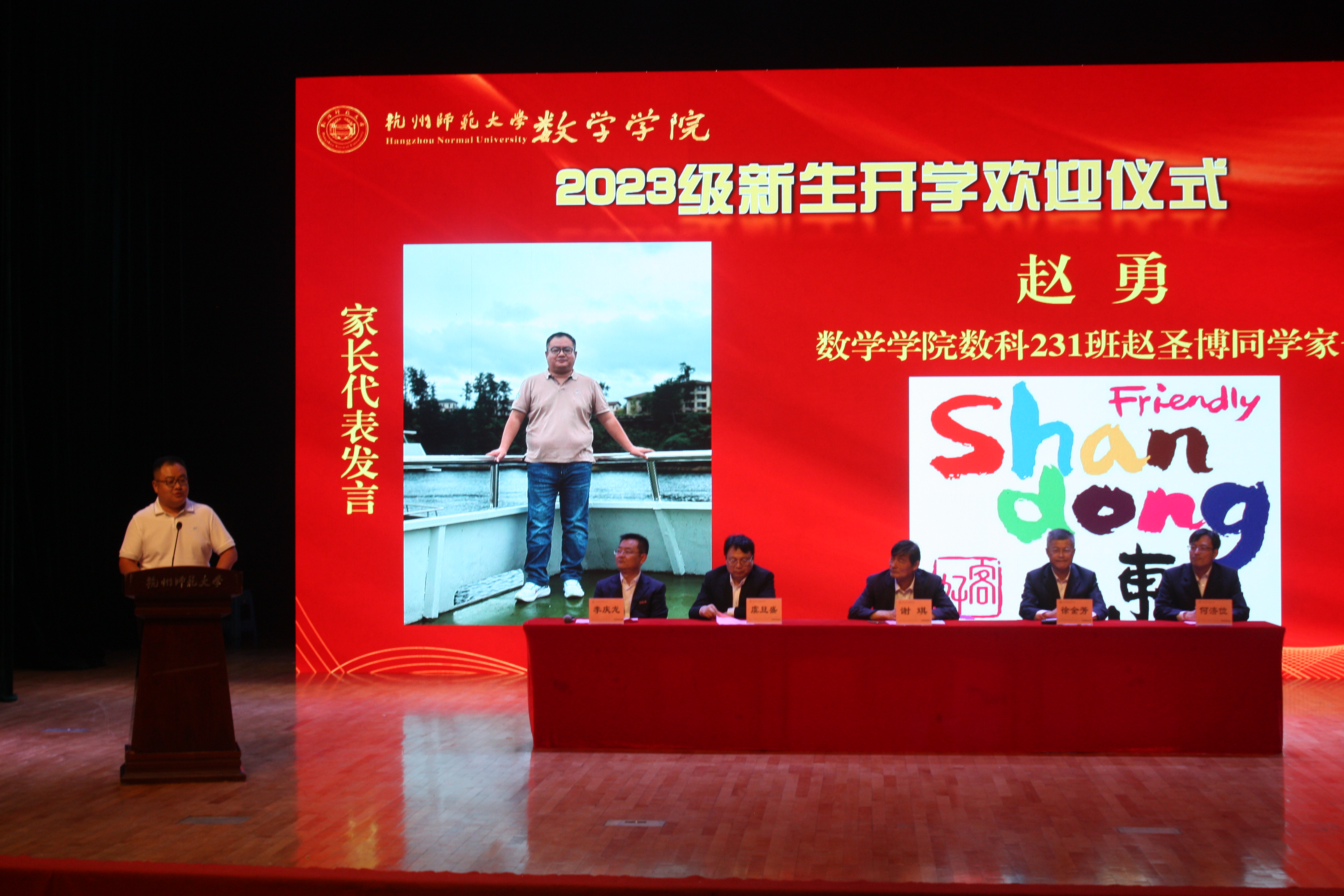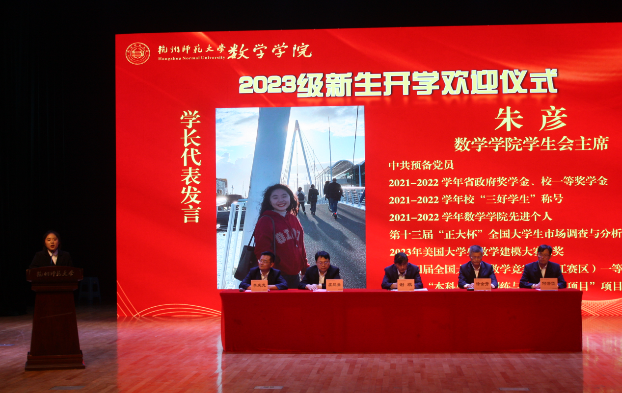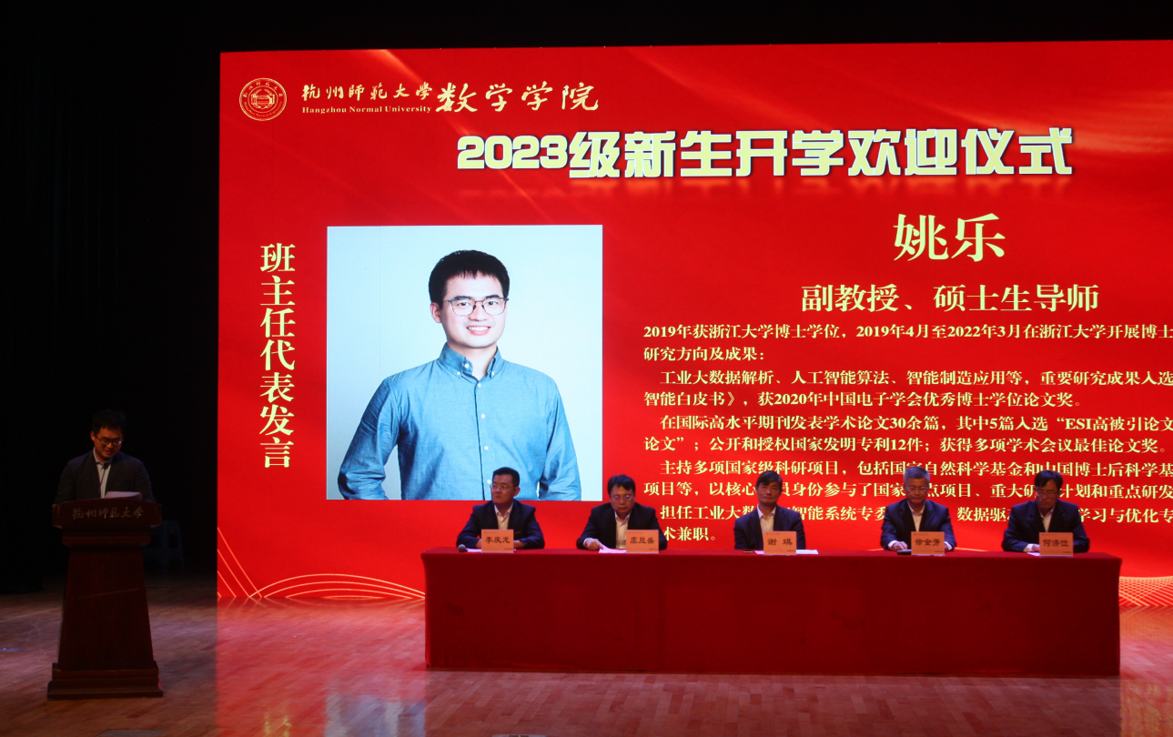 欢迎仪式上,院长谢琪教授热情洋溢地发表了欢迎致辞,向2023级新同学表示热烈的欢迎,向呵护养育、培养教育新同学们的父母和老师表示衷心的感谢。他说,恰逢杭州亚运会举办之际,杭州师范大学也作为亚运场馆见证了亚运金牌的诞生,在如此风景秀丽的城市读书、生活,是非常幸福的事情。杭州师范大学在百十年来,涌现出著名数学家、教育家陈建功先生等各领域成绩斐然的杰出校友,培养了国家千人、长江学者、国家杰青等知名学者和一大批中学名师和名校长。一代又一代杭师大数学人弘文励教、青蓝相继,知数明德、弦歌不辍。院长谢琪教授勉励大家发扬科学精神、肩负起报效国家的责任,发现数学之美,不负韶华,成为一名优秀的数学人。