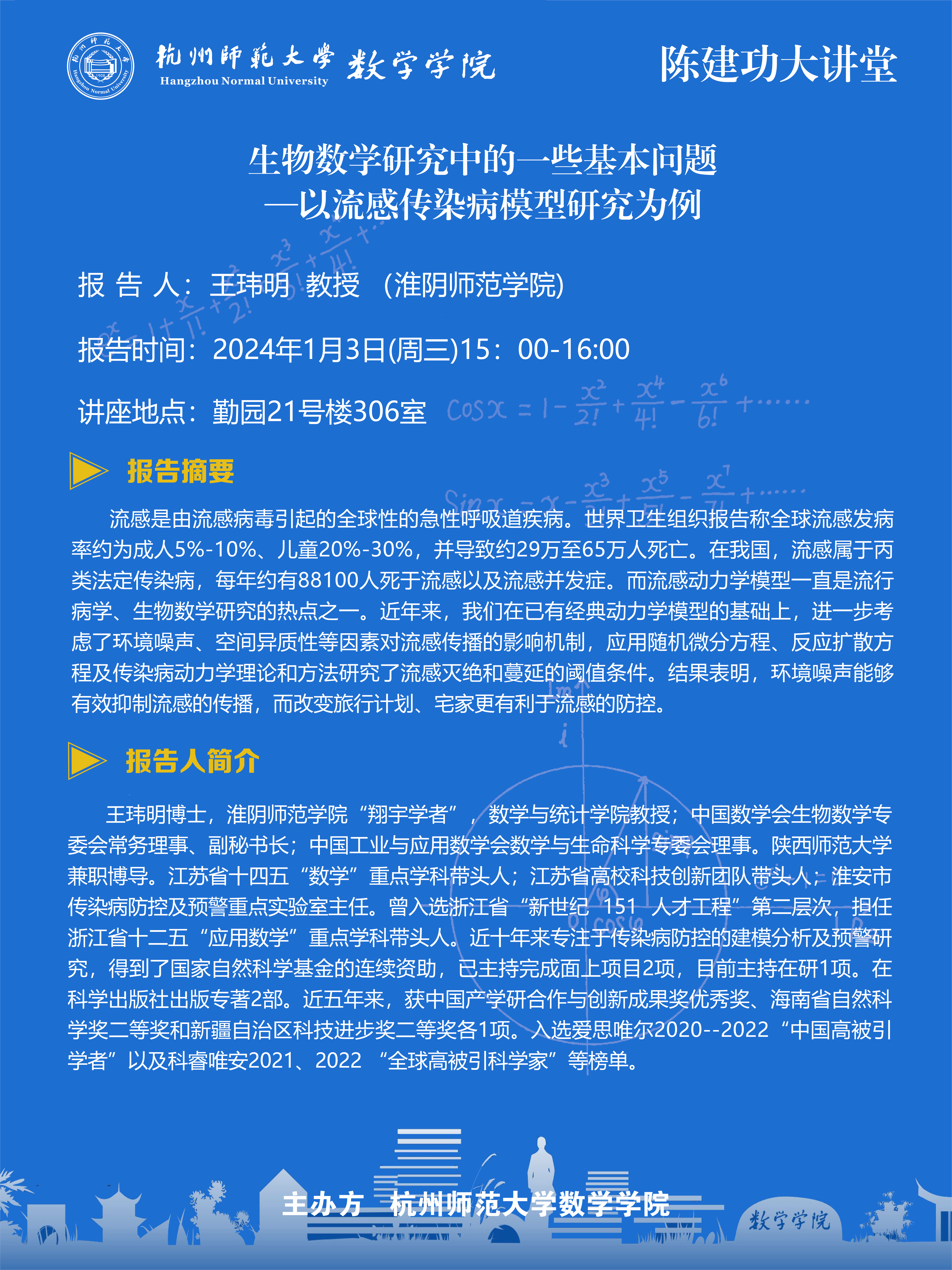 陈建功大讲堂 (2024-2):生物数学研究中的一些基本问题—以流感传染病模型研究为例