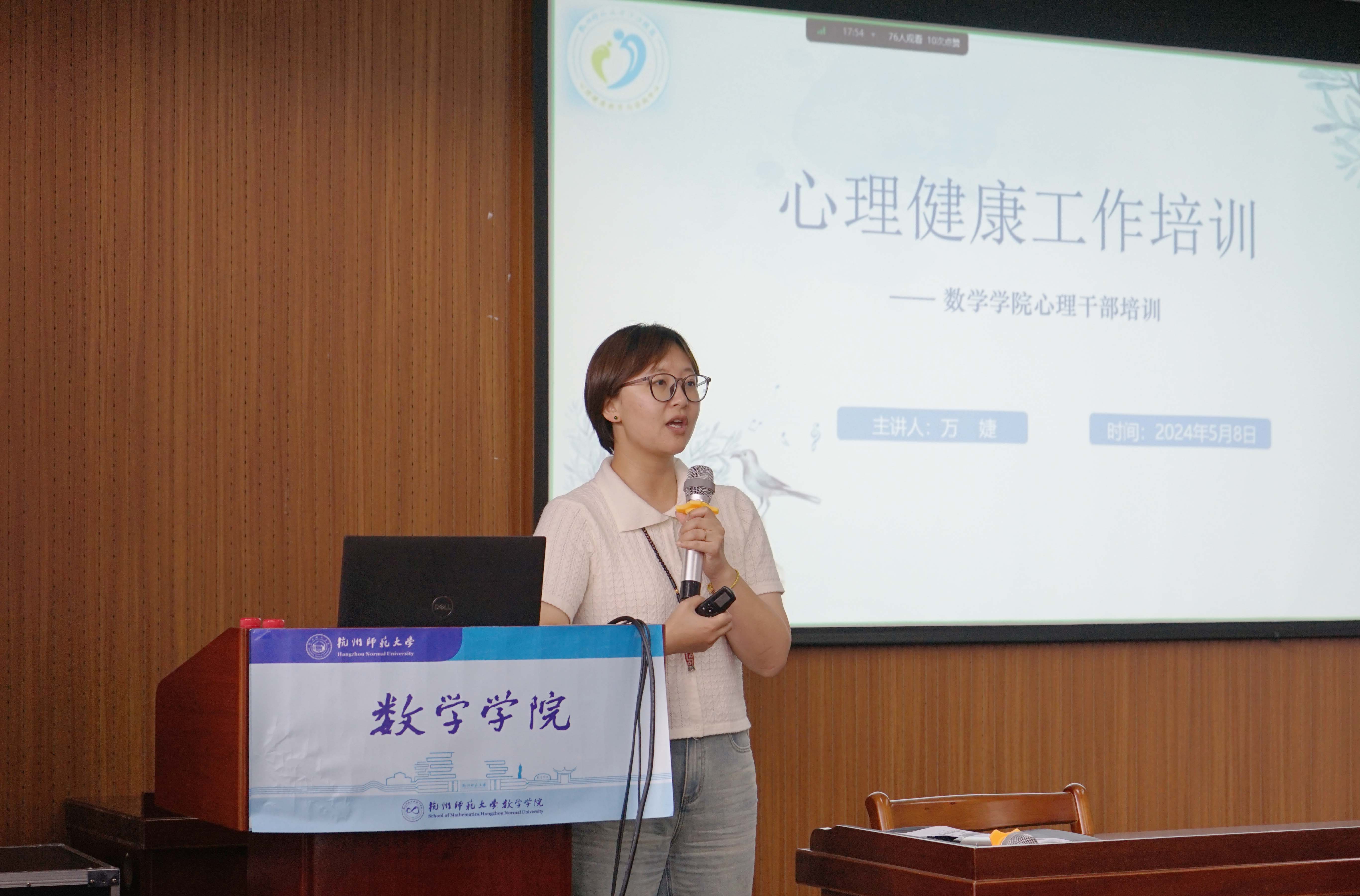 邀请心理中心万婕老师开展心理干部培训工作。万老师从自助、助人、互助三个维度分享心理健康知识,明确心理干部职责。万老师通过幽默的讲解以及具体的例子引导同学们接纳和包容自己的负面情绪与自身缺陷,将此化为能量,组成完整的自己,同时也鼓励同学们积极为心理不健康或心理状态异常的同学提供相应的帮助,耐心聆听他们的心声,通过“同理心”与“共情”的情绪工具为他们排遣心中的忧郁。最后还给同学们分享了许多获取心理健康知识的公众号、书籍与影视作品。