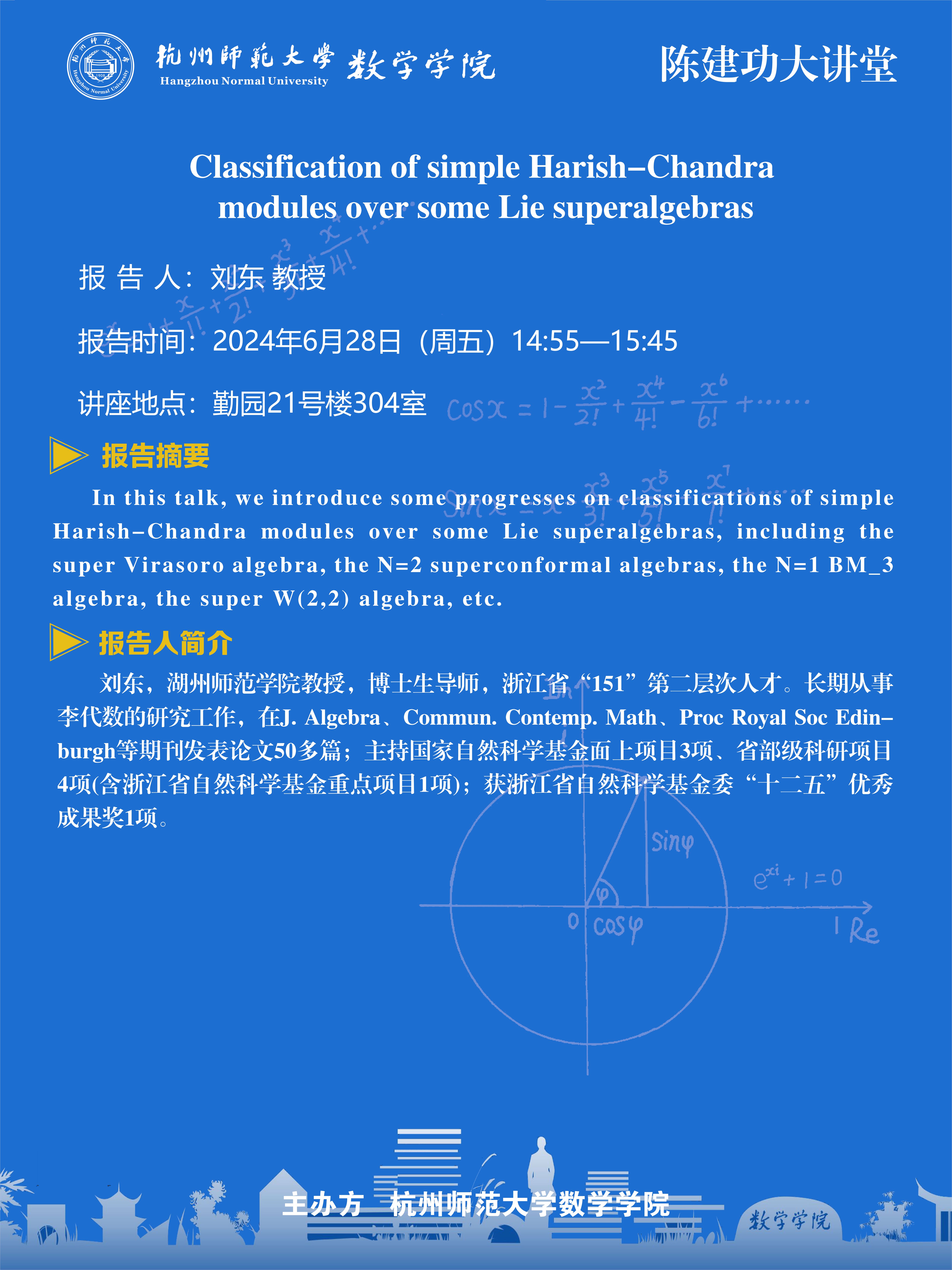 陈建功大讲堂(2024-102):Classification of simple Harish-Chandra modules over some Lie superalgebras