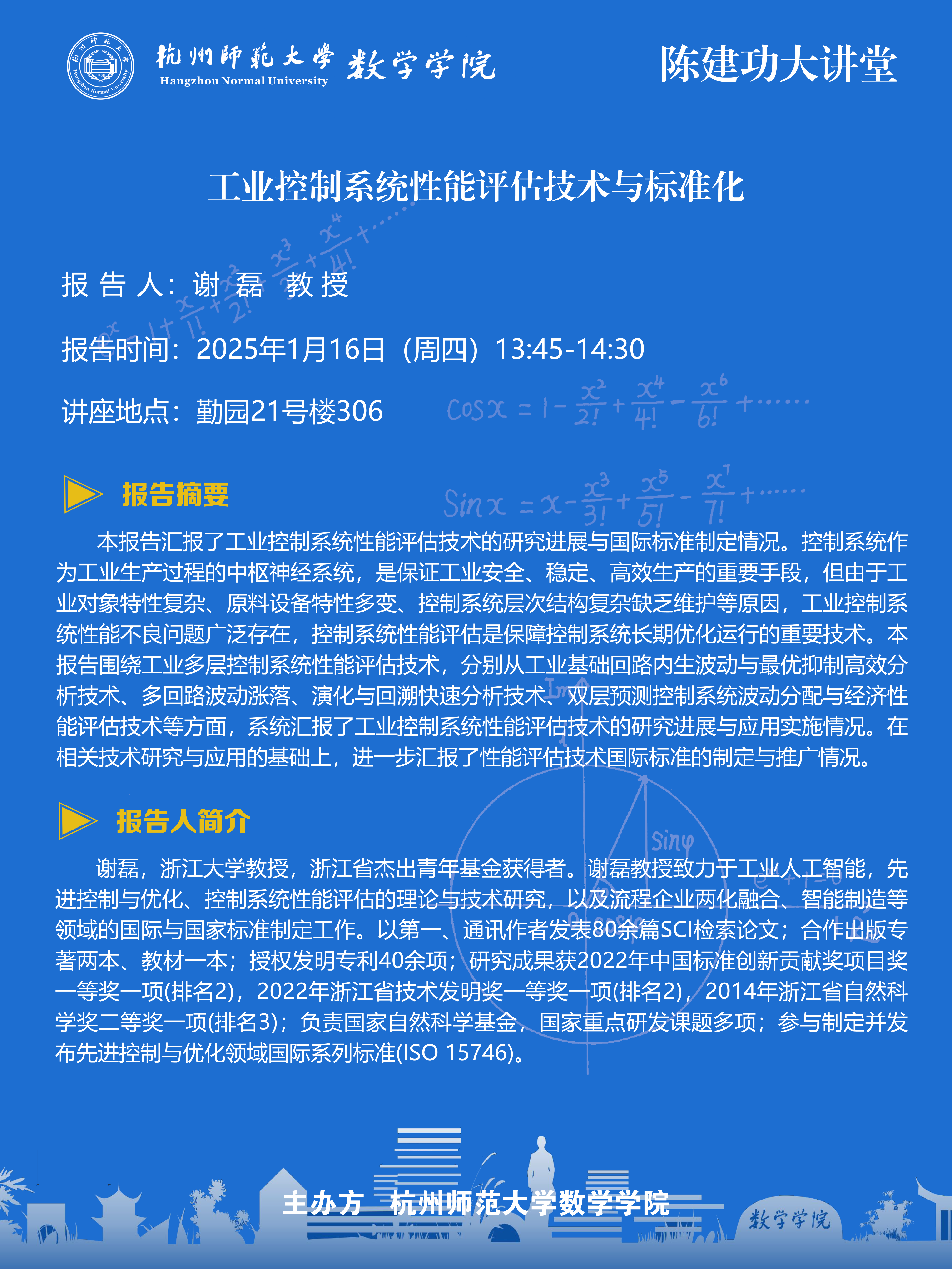 陈建功大讲堂(2025-4):工业控制系统性能评估技术与标准化