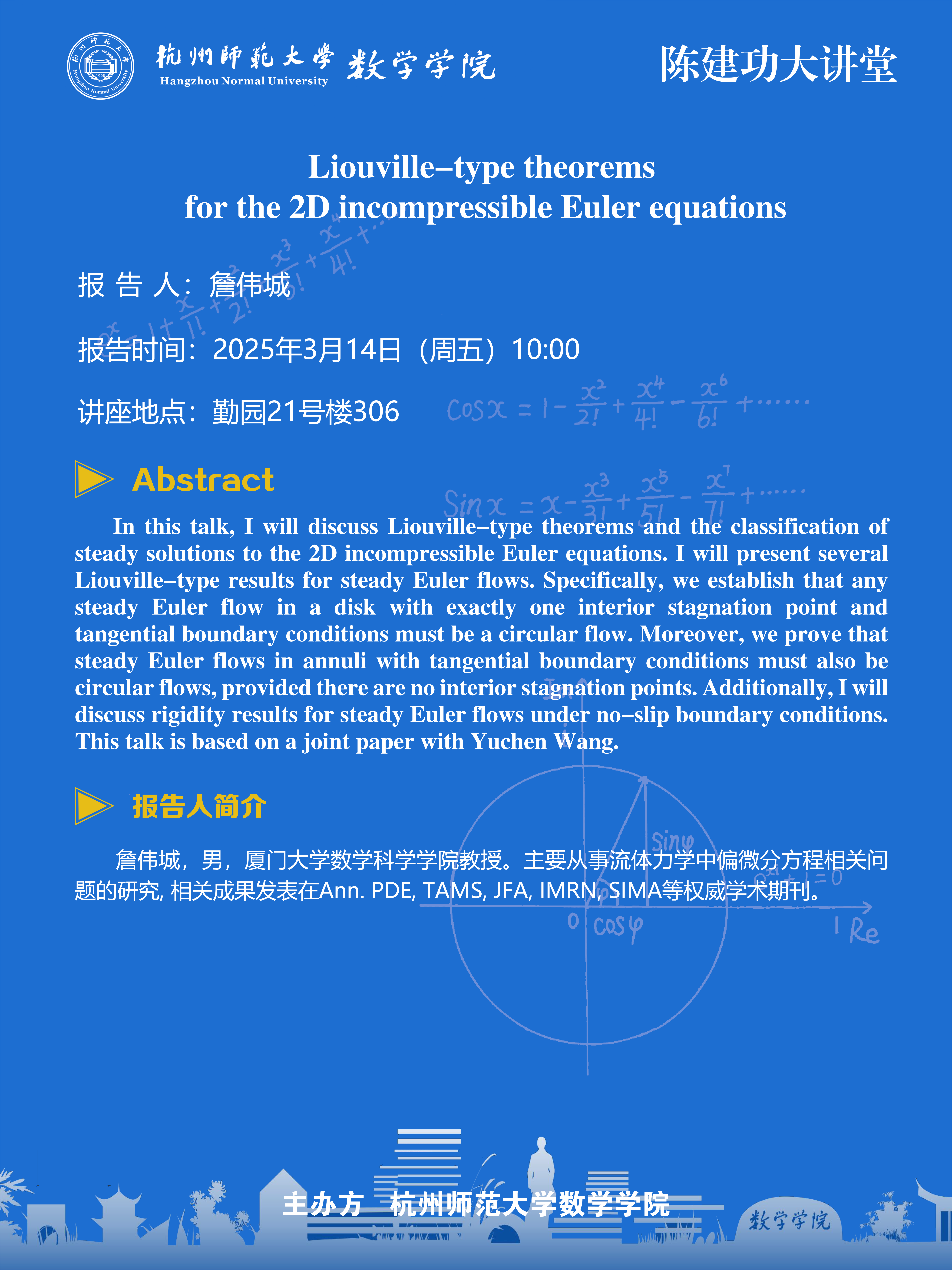 陈建功大讲堂(2025-10):Liouville-type theorems for the 2D incompressible Euler equations