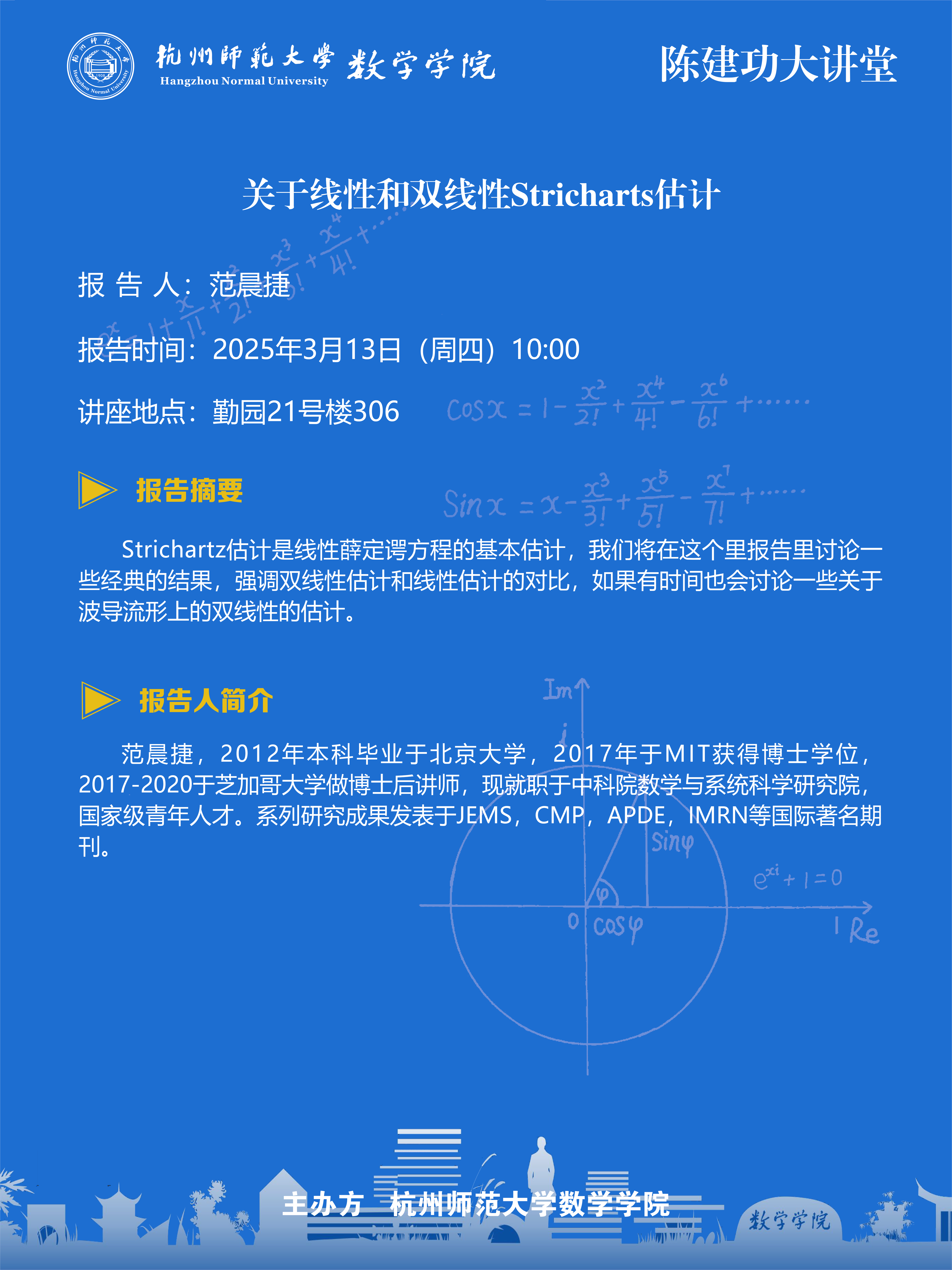陈建功大讲堂(2025-12):关于线性和双线性Stricharts估计