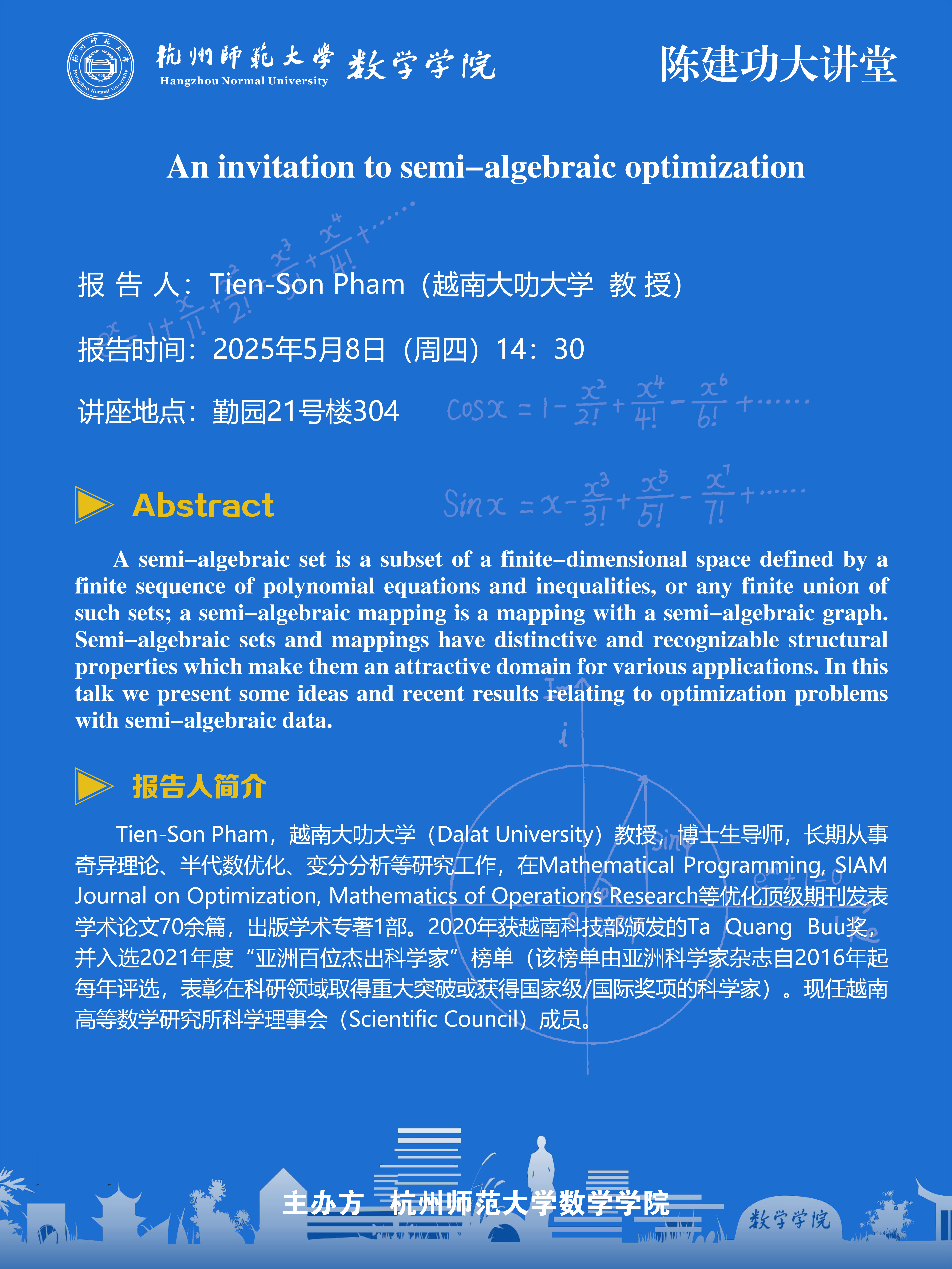 陈建功大讲堂(2025-25):An invitation to semi-algebraic optimization