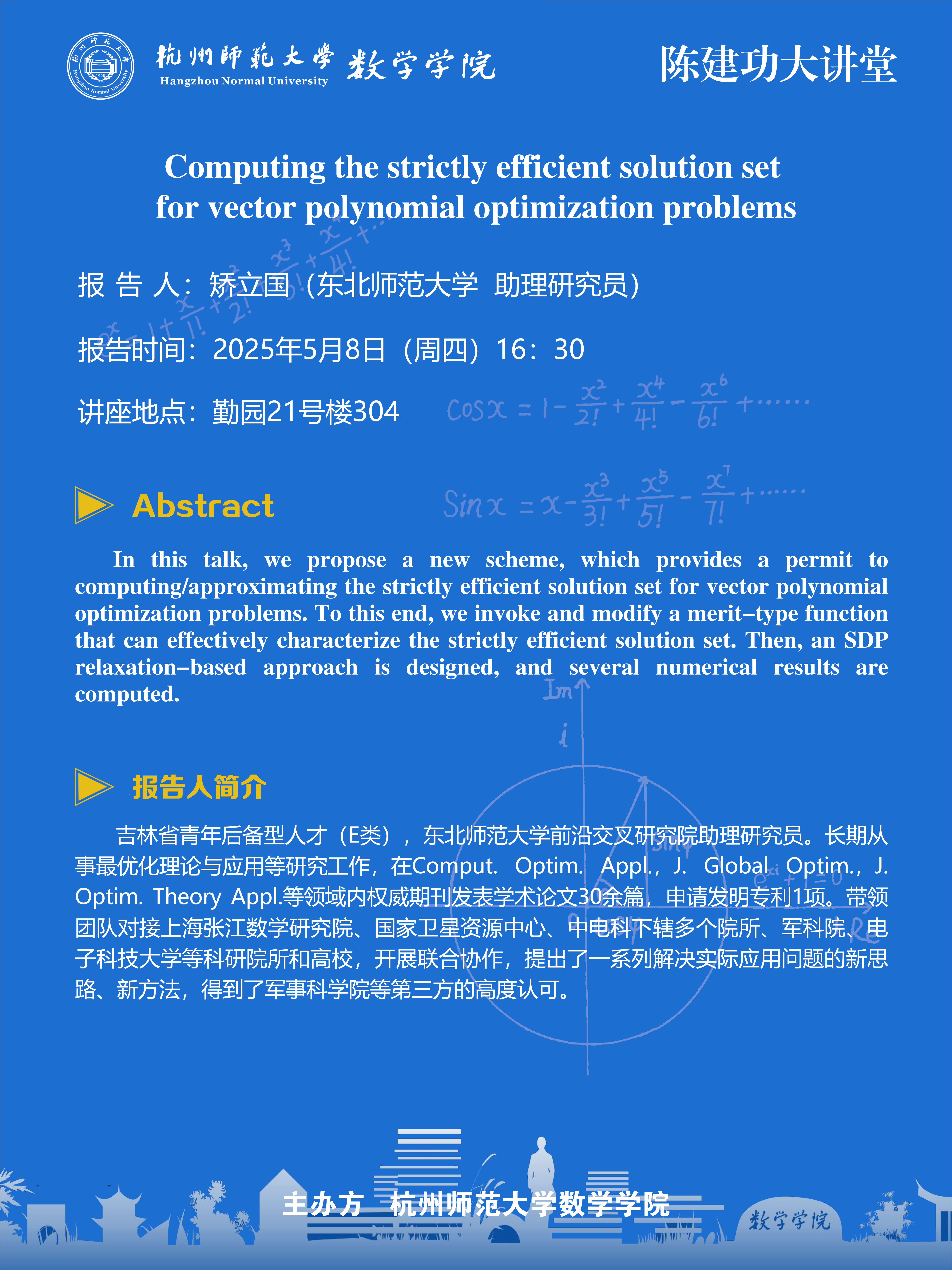 陈建功大讲堂(2025-27):Computing the strictly efficient solution set for vector polynomial optimization problems
