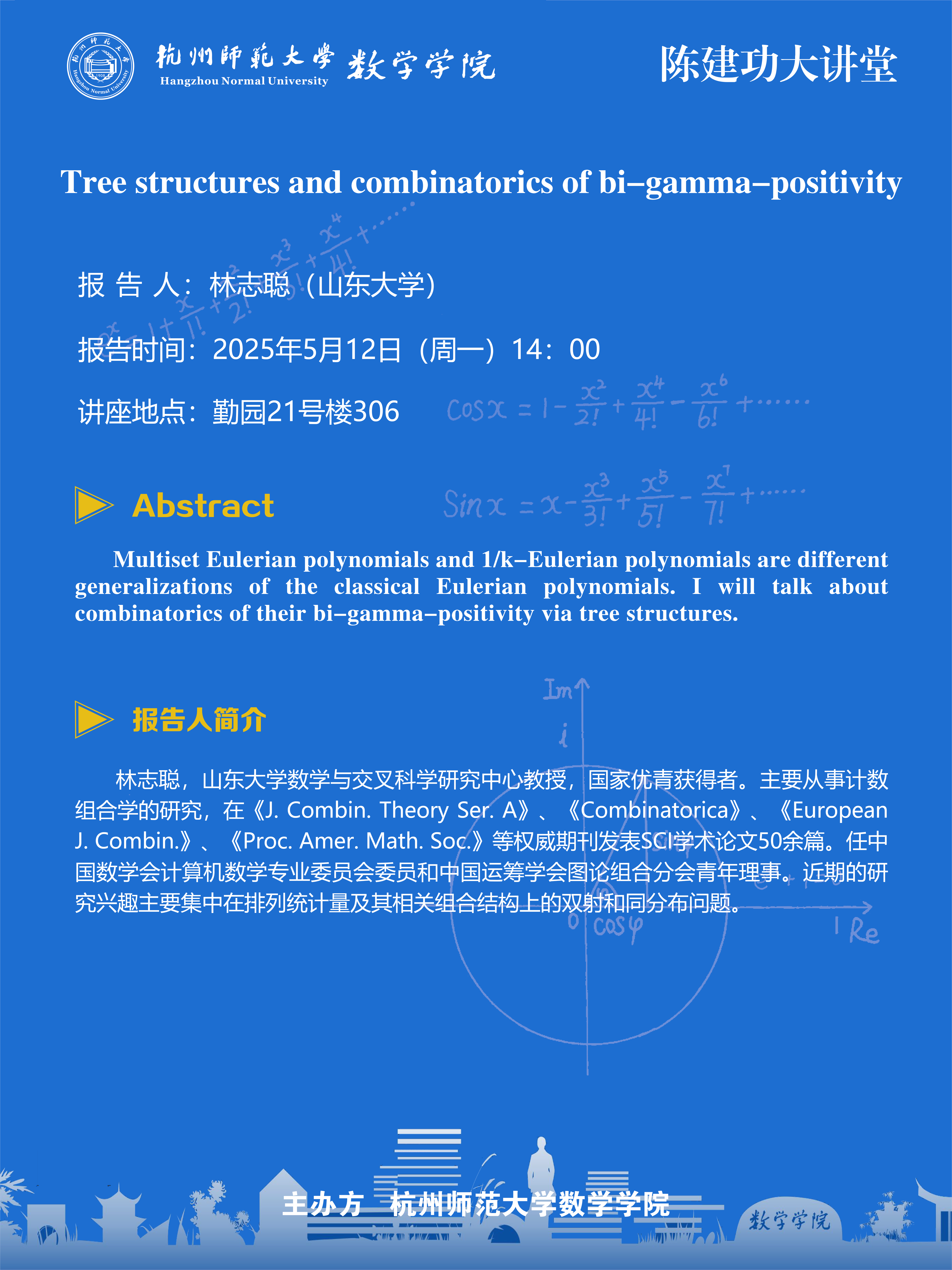 陈建功大讲堂(2025-29):Tree structures and combinatorics of bi-gamma-positivity